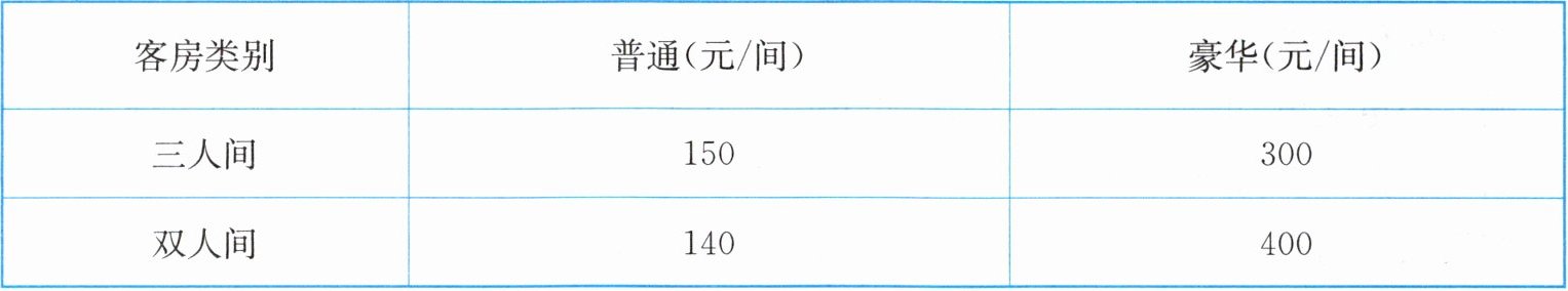 7. 某酒店客房部有三人间、双人间客房,每天收费数据如表所示: