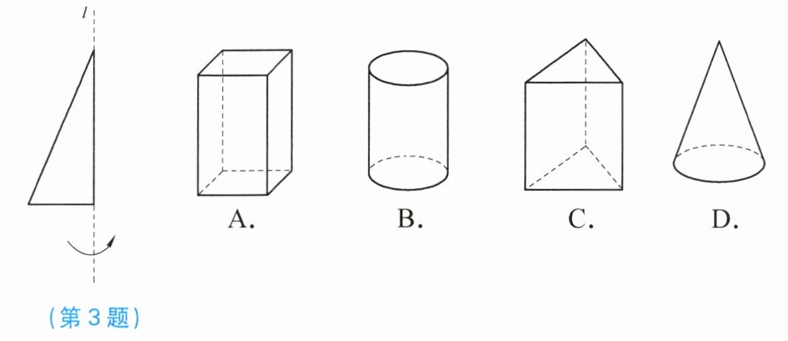 3. 如图所示,将三角形绕直线 $ l $ 旋转一周后可以得到的立体图形是(