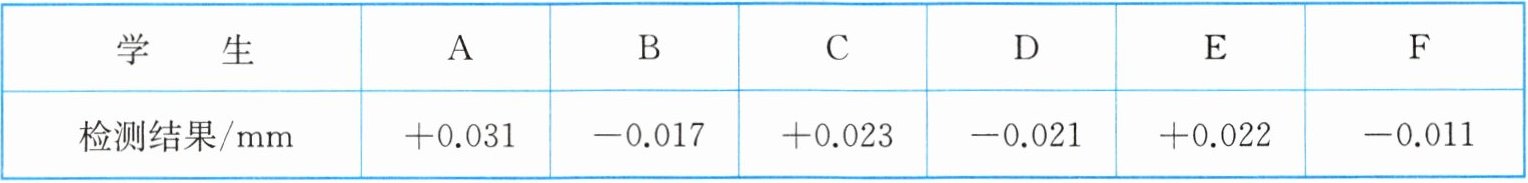 (1)符合要求的有:B,F;(2)F做的质量最好,A做的质量最差;(3)按照最好到最差排名:F,B,D,E,C,A;(4)测得误差的绝对值越小越接近标准