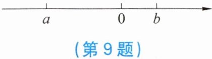 9. 已知 a,b 两数在数轴上的位置如图所示,化简:$\dfrac{|a|}{-a} + \dfrac{|b|}{b}$.