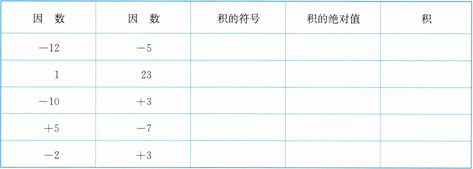 由上表可知,有理数乘法运算可分为两步,第一步确定积的