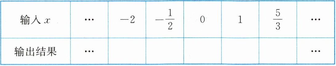 (1)$-\frac{4}{3},-\frac{1}{3},0,\frac{2}{3},\frac{10}{9}$ (2)输出结果是输入$x$的$\frac{2}{3}$倍
