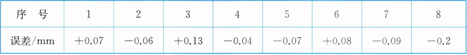 5. 某圆形零件的直径要求是 $ 30 \pm 0.1 $ mm,下表是 8 个已生产出来的零件圆孔直径的检测结果(以 30 mm 为标准):
