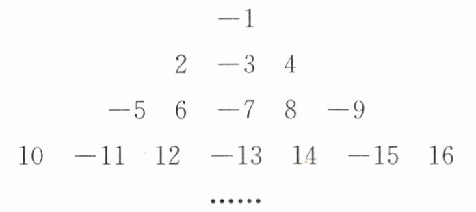 6. 观察一列数:$-1$,$2$,$-3$,$4$,$-5$,$6$,$-7$,…。将这列数排成下列形式: