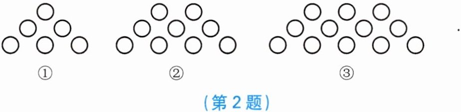 2. 下列图形都是由同样大小的小圆圈按一定规律组成的,其中第①个图形中一共有 $ 6 $ 个小圆圈,第②个图形中一共有 $ 9 $ 个小圆圈,第③个图形中一共有 $ 12 $ 个小圆圈……按此规律排列,则第 $ n $ 个图形中小圆圈的个数为(
