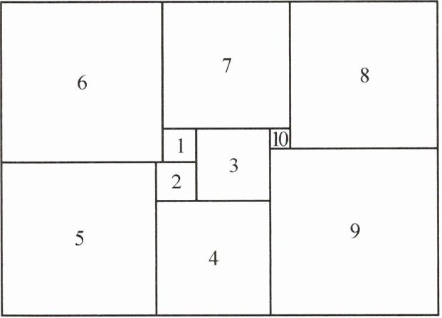 9. 如图所示,1925年数学家莫伦发现的世界上第一个完美长方形,它恰能被分割成$10$个大小不同的正方形,其中标注$1$,$2的正方形边长分别为x$,$y$,请你计算: