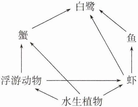 (2)水生植物→浮游动物→蟹→白鹭(或水生