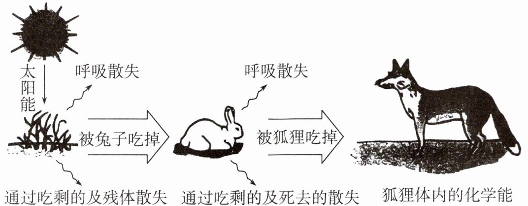 。(2)分析上图能量传递的过程,可以推测在生态系统中,能量流动的特点是____。假如图中的狐狸被全部捕杀,兔的数量也不会无限地增加,主要原因是____(至少答出两点)。