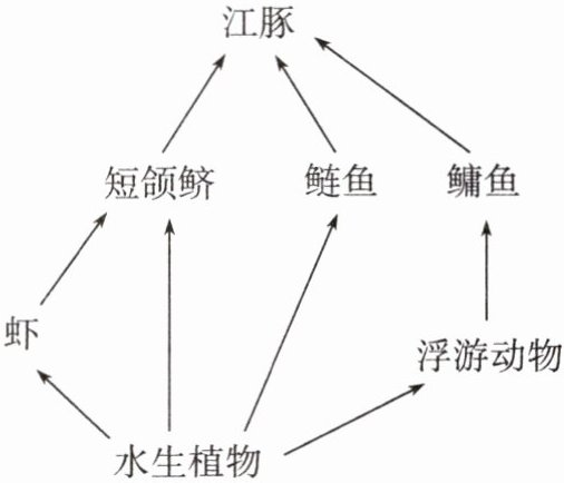 江豚 水生植物→鲢鱼→江豚(或水生植物→