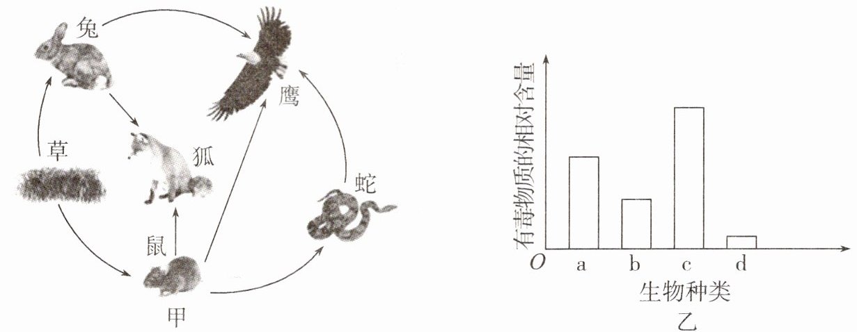 ;图乙中的a对应图甲中的生物是蛇