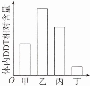 9. 某海洋被DDT(一种难以分解的化学农药)污染,其中的甲、乙、丙、丁四种生物构成了一条食物链,它们体内的DDT相对含量如右图所示。由此推测,位于食物链最顶端(营养级别最高)的生物是(