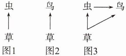 )① 三幅图中最长的食物链是草→虫→鸟 ② 三幅图中虫和鸟之间是捕食关系 ③ 综合三幅图可以看出,食物网中虫和鸟的关系更复杂,既有捕食关系,还有竞争关系 ④ 三幅图中生物所需要的能量来自太阳能 ⑤ 由三幅图可以看出,鸟获得的能量最多