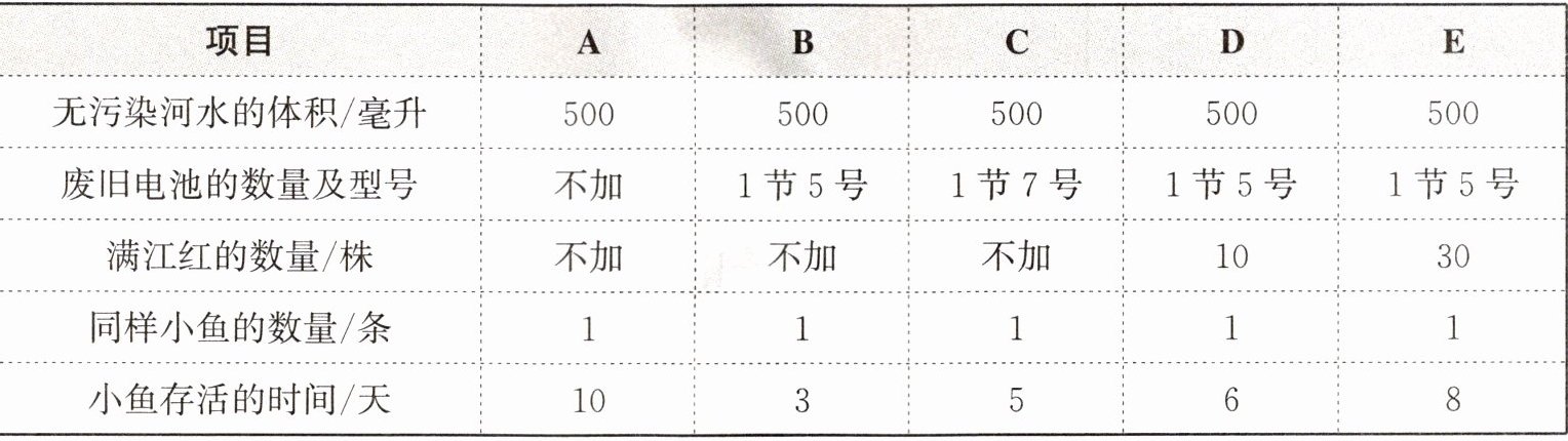 (2)满江红的有无 满江红能净化被废旧电池污染的水质