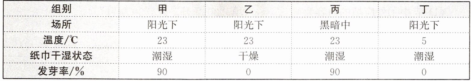 (3)除了以上探究的影响种子萌发的环境条件外,还有哪些能影响种子萌发的环境条件呢?你还可以提出的探究问题: