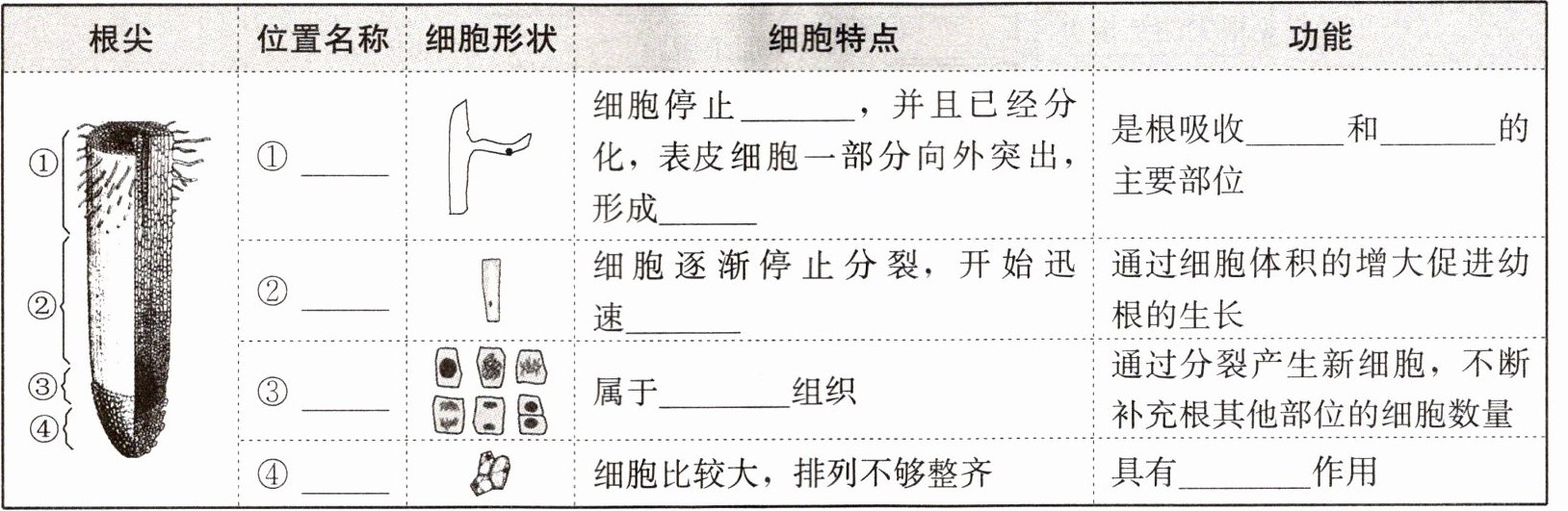 3. 幼根的生长:一方面靠______,另一方面靠______。