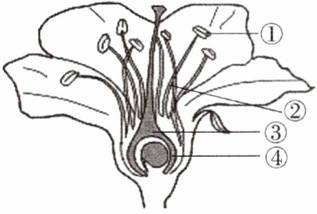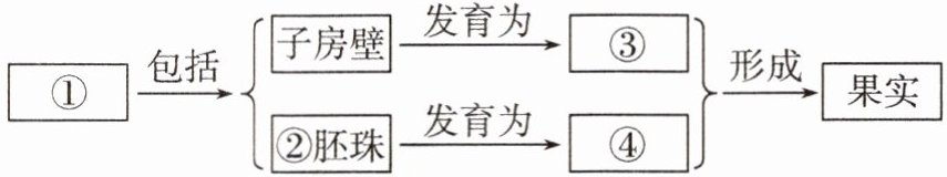 7. 下图是果实的形成示意图。图中①与④分别代表(