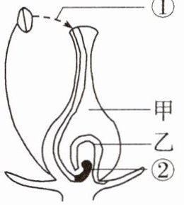 5. 如图是花结构示意图,甲、乙表示结构,①②表示生理过程。下列有关说法错误的是(