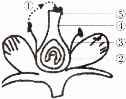 解析:此题主要考查花的结构以及种子和果实的形成过程。图中①传粉、②子房、③花丝、④花柱、⑤柱头;雌蕊和雄蕊与果实和种子的形成有直接的关系,它们是花的主要结构。植物在开花时期,如果阴雨绵绵,就会影响昆虫的活动,从而造成传粉不足,所以果树开花时节,如果阴雨绵绵,会造成水果减产,主要原因是下雨影响到了①传粉;完成受精后③花丝、④花柱、⑤柱头都凋落,②子房不凋落,发育成果实。