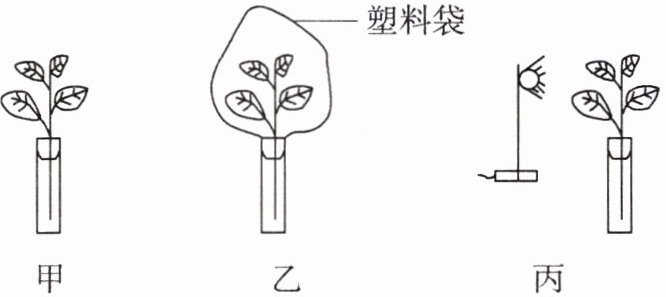 5. 将大小、生长状态一致的植物分成 3 组,甲、乙置于黑暗处,丙进行适宜光照(如图)。水分蒸发量由小到大的排列顺序是(