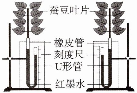 2. 光是影响蒸腾作用的主要因素,生物兴趣小组设计了如图所示的实验装置加以验证。初始时甲、乙装置的液面等高,一段时间后,甲、乙装置未插枝条一侧的管内液面高度为(