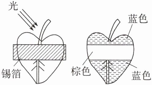 3. 1864年德国科学家萨克斯将天竺葵的绿色叶片放在暗处几小时,再将此叶片一半曝光,一半用锡箔遮光。经过一段时间光照后,用碘蒸气处理叶片,结果发现叶片的曝光部分显蓝色,遮光部分显棕色,该实验可以证明(