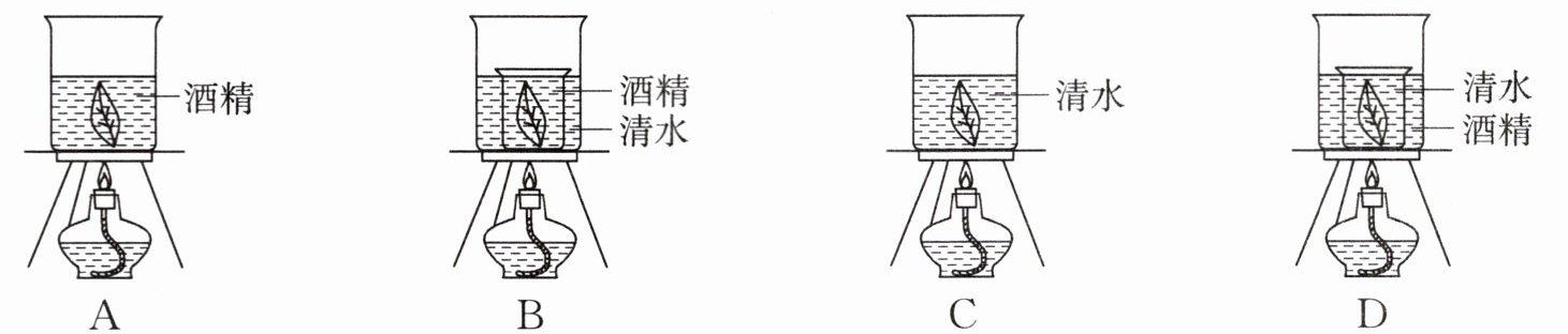 2. 下列各实验装置中,能迅速、安全地脱去绿叶中叶绿素的是(