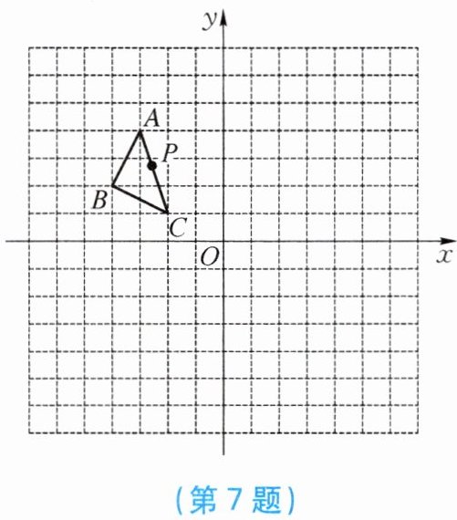 7. 如图,方格纸中的每个小方格都是边长为 $ 1 $ 个单位长度的正方形,在建立平面直角坐标系后,$ \triangle ABC $ 的顶点均在格点上。