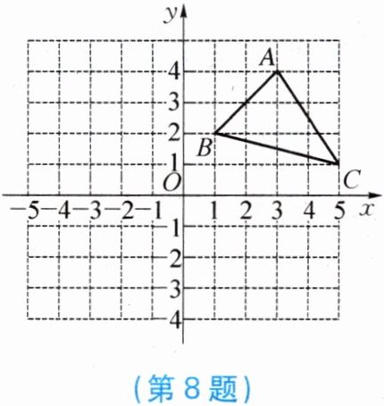 8. 如图,在平面直角坐标系中,$ \triangle ABC $ 的三个顶点坐标分别为 $ A(3,4) $,$ B(1,2) $,$ C(5,1) $。