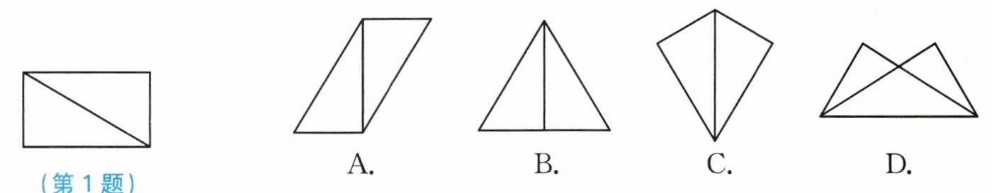 1. 小华将一张如图所示的长方形纸片沿对角线剪开,他利用所得的两个直角三角形通过图形变换构成了下列四个图形,选项中$\boldsymbol{