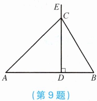 9. 如图,在垂直于线段 $ AB $ 的射线 $ DE $ 上有一个动点 $ C $(点 $ C $ 与点 $ D $ 不重合),分别连接 $ CA $, $ CB $,得到三角形 $ ABC $.
