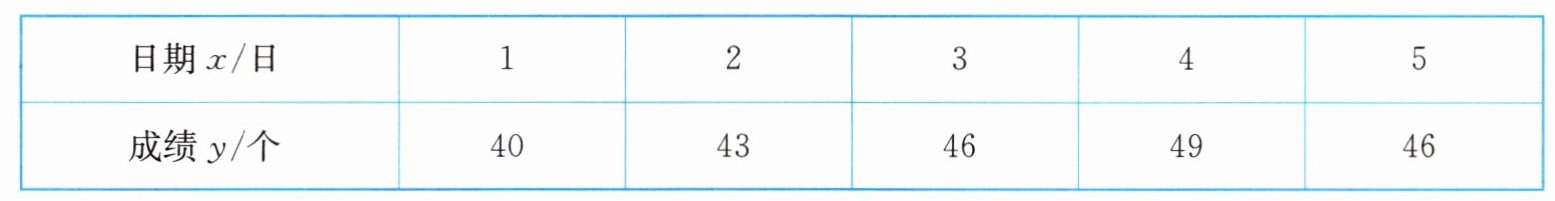 6. 小红在练习仰卧起坐,本月 $ 1 $ 日至 $ 5 $ 日的成绩与日期具有如下表所示的关系,则成绩 $ y $(单位:个)