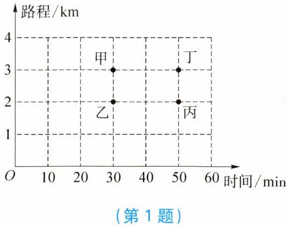 1. 甲、乙、丙、丁四个人步行的路程和所用的时间如图所示,按平均速度计算,走得最快的是(