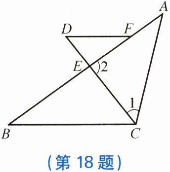 18. 如图,在$\triangle ABC$中,$CD平分\angle ACB交边AB于点E$,在$AE上取点F$,连接$DF$,使$\angle 1 = \angle D$。