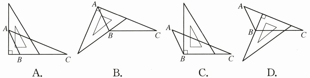 3. 用三角板作$\triangle ABC$的边 $BC$ 上的高,下列三角板的摆放位置正确的是( ).