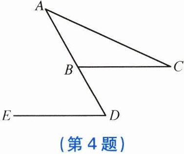 4. 如图,点 $D$ 在$\triangle ABC$边 $AB$ 的延长线上,$DE// BC$。若$\angle A = 35^{\circ}$,$\angle C = 24^{\circ}$,则 $\angle D$ 的度数是( ).