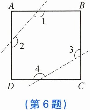 6. 如图,在正方形 $ABCD$ 中,截去$\angle A$,$\angle C$后,则$\angle 1+\angle 2+\angle 3+\angle 4 = ($ ).