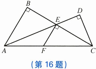 16. 在$\triangle ABC和\triangle ADC$中,$\angle B= \angle D = 90^{\circ}$,$AD$,$BC$交于点 $E$,$EF\perp BC$交 $AC$于点 $F$。