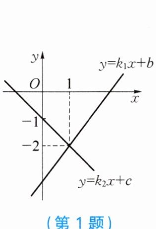 1. 直线 $ l_1:y = k_1x + b $ 与直线 $ l_2:y = k_2x + c $ 的图象如图所示,且直线 $ l_1,l_2 $ 交于点 $ (1,-2) $,则关于 $ x $ 的不等式 $ k_1x + b \lt k_2x + c $ 的解集为(