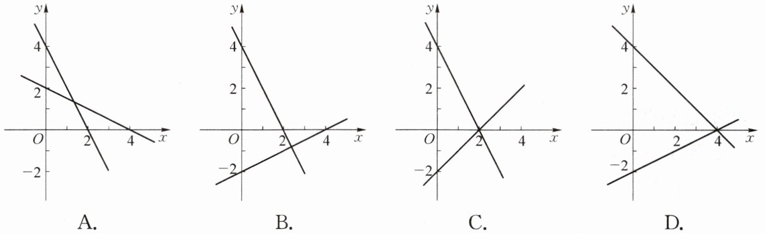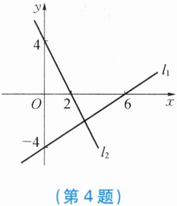 4. 如图,直线 $ l_1 $ 过点 $ (6, 0) $,$ (0, -4) $,直线 $ l_2 $ 过点 $ (0, 4) $,$ (2, 0) $,那么两直线的交点坐标可以看作方程组