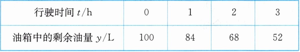 6. 某汽车生产厂家对其生产的 A 型汽车进行耗油量实验,实验中油箱中的剩余油量 $ y \, L $ 与行驶时间 $ t \, h $ 的关系见下表,油箱中的剩余油量 $ y \, L $ 与行驶路程 $ x \, km $ 的关系如图所示,则此 A 型汽车在实验中的平均速度为