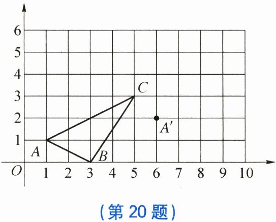 20. 在平面直角坐标系中,$ \triangle ABC $ 三个顶点的位置如图所示,现将 $ \triangle ABC $ 平移,使得点 $ A $ 移至图中的点 $ A' $ 的位置.