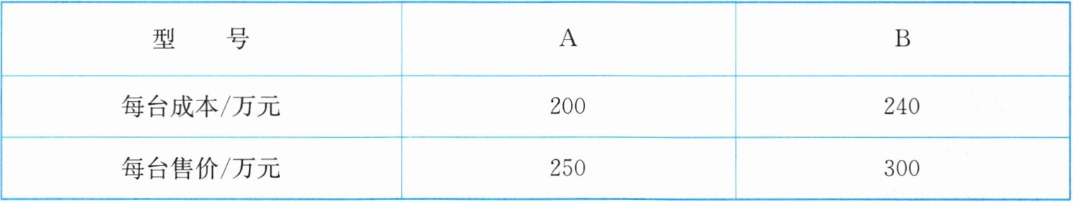 9. 某工程机械厂根据市场需求,计划生产 A,B 两种型号的大型挖掘机共 100 台,该厂所筹生产资金不少于 22400 万元,但不超过 22500 万元,且所筹资金全部用于生产此两种型号挖掘机,所生产的此两种型号挖掘机可全部售出,此两种型号挖掘机的生产成本和售价见下表:
