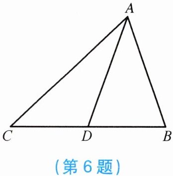 6. 如图,在$\triangle ABC$中,$AD是边BC$上的中线,$\triangle ADC的周长比\triangle ABD的周长多4$,$AB+AC= 24$,则$AC$的长为