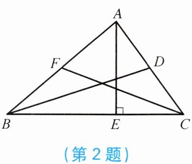 2. 如图,在$\triangle ABC$中,$AE是\triangle ABC$的高,$BD是\triangle ABC$的角平分线,$CF是\triangle ABC$的中线,下列说法不一定正确的是(