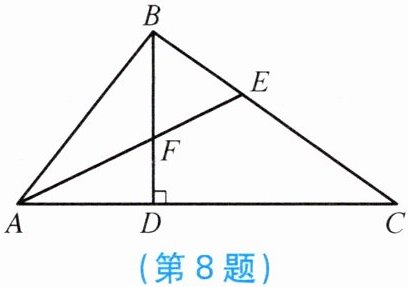 8. 如图,$BD是\triangle ABC$的高,$AE平分\angle BAC交BC于点E$,交$BD于点F$,$\angle BAE= 26^{\circ}$,求$\angle BFE$的度数。