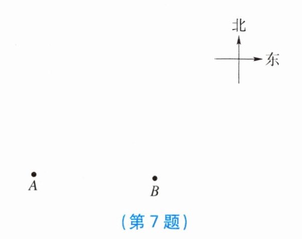 7. 如图,$A$ 地和 $B$ 地都是海上观测站,从 $A$ 地发现在它的北偏东 $60^{\circ}$ 方向有一艘船 $T$,同时,从 $B$ 地发现这艘船 $T$ 在它的北偏东 $30^{\circ}$ 方向上,试在图中确定这艘船 $T$ 的位置。