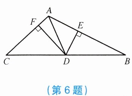 6. 如图,在△ABC 中,AD 是中线,DE ⊥ AB 于点 E,DF ⊥ AC 于点 F,若 AB = 6 cm,AC = 4 cm,则$\frac{DE}{DF}$的值为