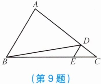 9. 如图,在 $ △ABC $ 中,点 $ D $,$ E $ 分别在边 $ AC $,$ BC $ 上。$ DB $ 平分 $ ∠ADE $,$ DE // AB $,$ ∠CDE = 82^{\circ} $,求 $ ∠EDB $ 和 $ ∠A $ 的度数。