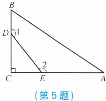 5. 如图,$\triangle ABC$为直角三角形,$\angle C = 90^{\circ}$,点$D$,$E分别在边BC$,$AC$上,则$\angle 1 + \angle 2 = $