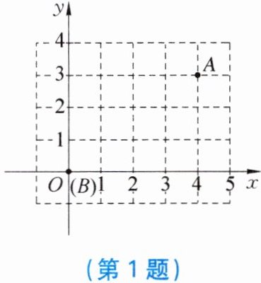 1. 如图,在方格纸上有 $ A $,$ B $ 两点.若以点 $ B $ 为原点建立平面直角坐标系,则点 $ A $ 的坐标为 $ (4,3) $.若以点 $ A $ 为原点建立新的平面直角坐标系,其中 $ x $,$ y $ 轴的方向不变,则此时点 $ B $ 的坐标为(